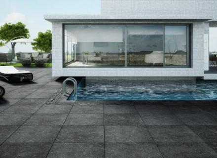 Keramická terčová dlažba je k dispozici v mnoha designech. K dispozici je v několika vzorech, jako např. imitace přírodního dřeva, kamene nebo v šedé či béžové barvě. Dlažba je protiskluzná, mrazuvzdorná a oproti betonové dlažbě vyniká jak designem, tak i snadným čištěním. Dlažba totiž vůbec nenasákne nečistotu.